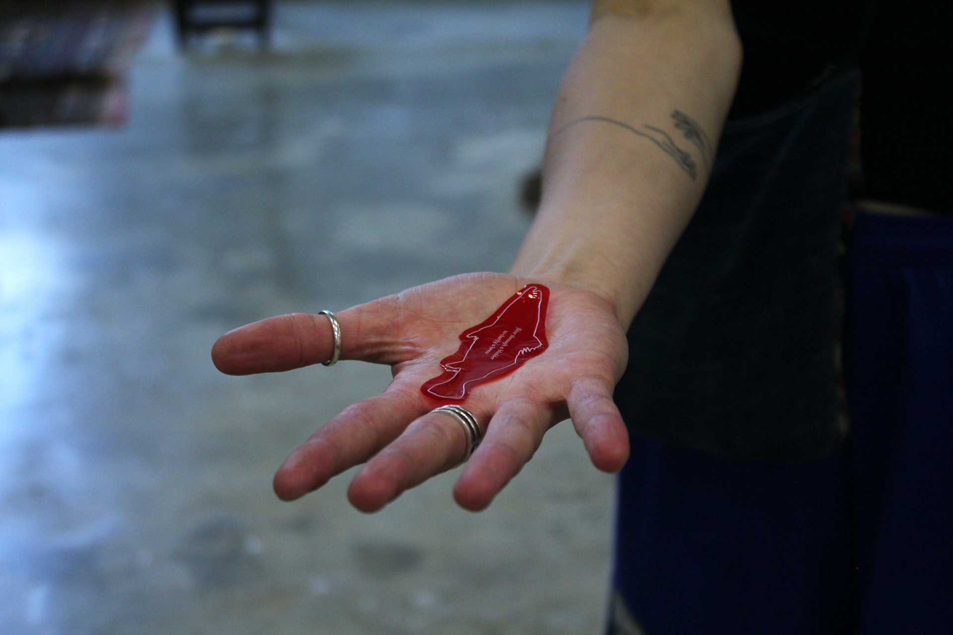 3 part video installation playing inside tin cans installed around the studio walls. Viewers were asked to climb ladders or stoop to awkward heights to view the videos. A speculative fiction imagining alternative production lines from the bodies of fish. Alongside the videos were 100+ individualised cellophane miracle fish for viewers to take home.